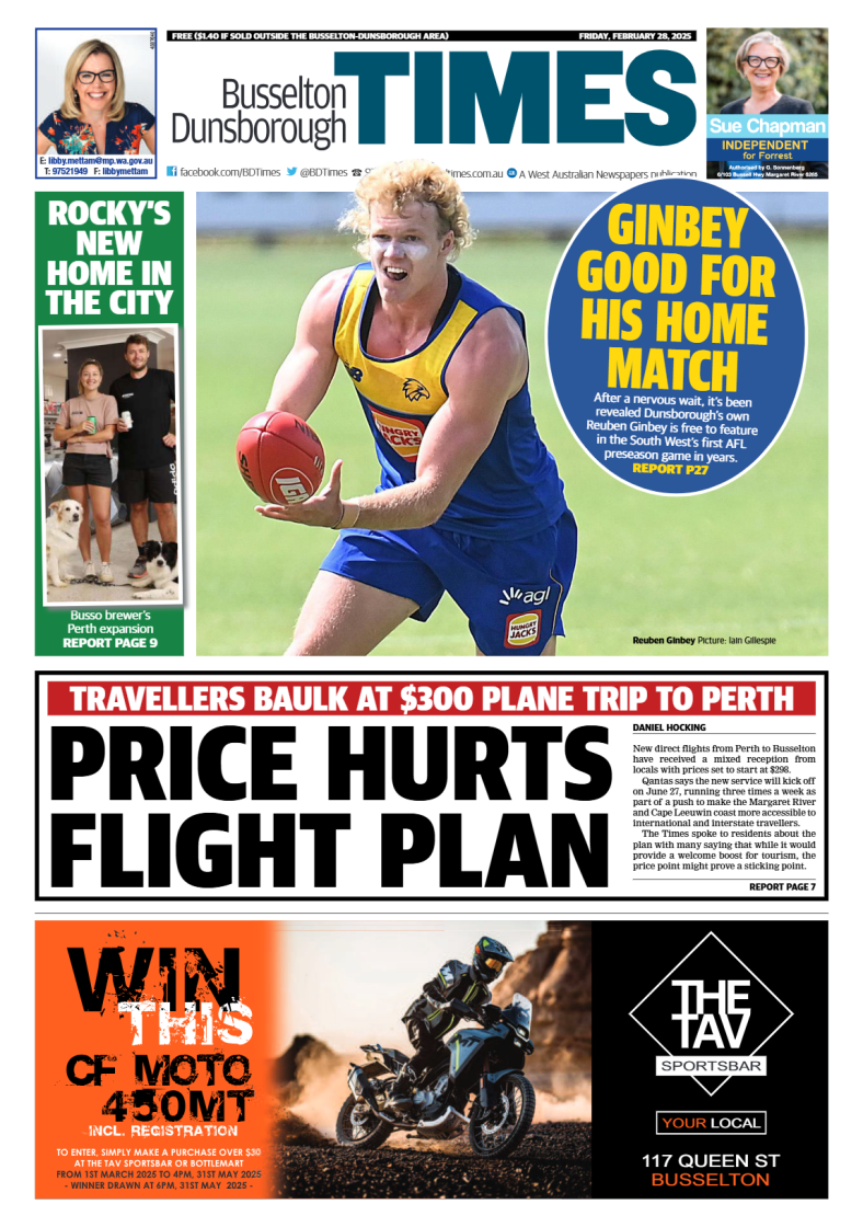 Its commitment to balanced editorial content and an easy reading style has seen the Times become Busselton and Dunsborough’s paper of choice. The paper covers all aspects of local news and shares common sections with its sister paper, Augusta Margaret River Times. These sections include the popular Wheels lift-out, Times Property lift-out plus the up-to-date entertainment section Times Life.